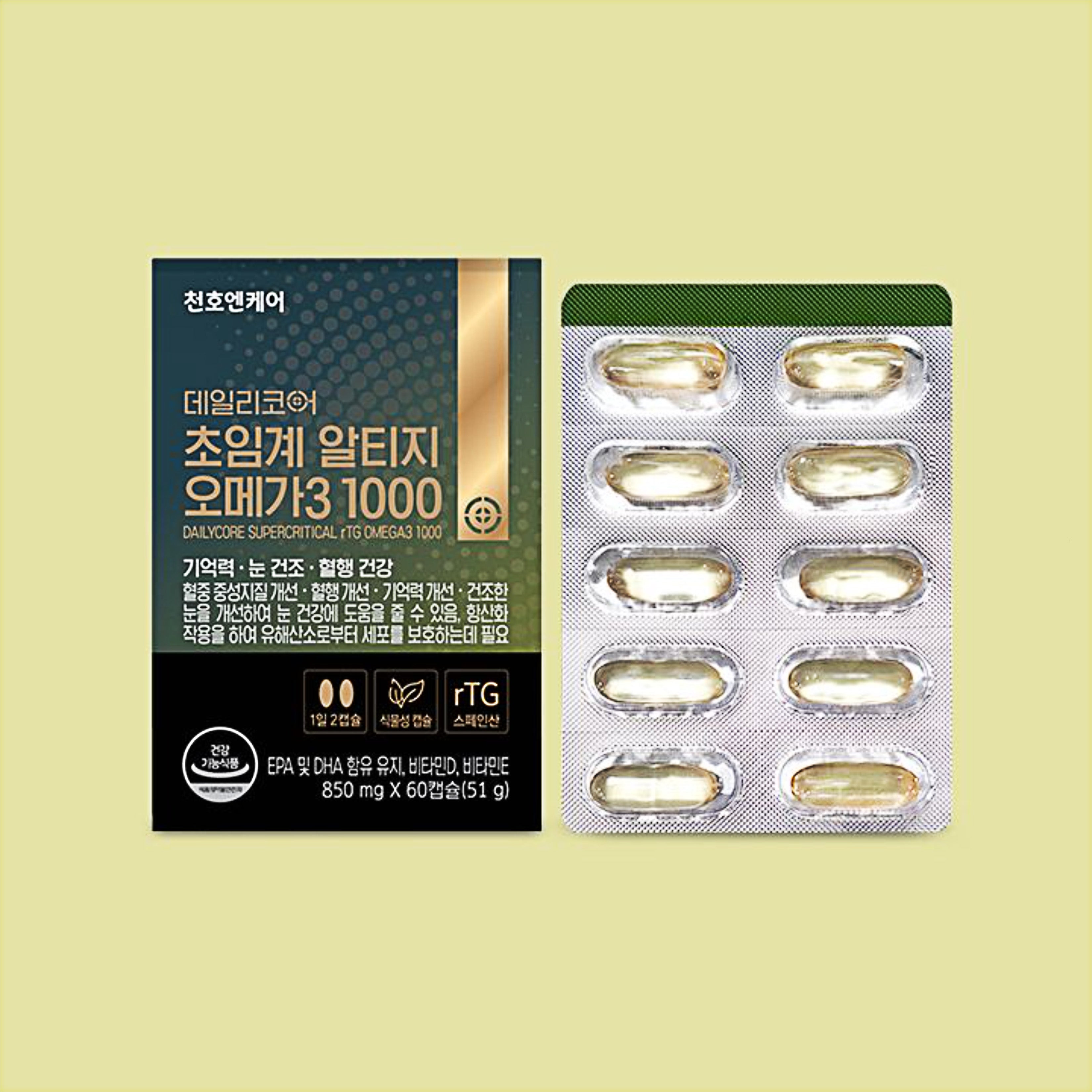 Product Type: Health Supplement / EPA and DHA containing oil, Vitamin D, Vitamin E [EPA and DHA containing oil] May help improve blood triglyceride levels, support blood circulation, improve memory, and alleviate dry eyes, promoting eye health [Vitamin D] Necessary for the absorption and utilization of calcium and phosphorus, essential for bone formation and maintenance, and helps reduce the risk of osteoporosis [Vitamin E] Provides antioxidant effects, protecting cells from harmful oxygen.